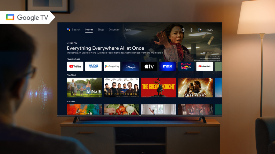 Google TV vám nabídne přehledné prostředí a přístup k tisícům aplikací v obchodě Google Play. Najdete zde populární streamovací služby jako Netflix, Disney+, YouTube, HBO Max, Prime Video nebo Oneplay. Systém navíc přináší chytrá doporučení podle toho, co sledujete nejčastěji. Všechny aplikace, filmy a seriály tak máte pěkně na jednom místě.