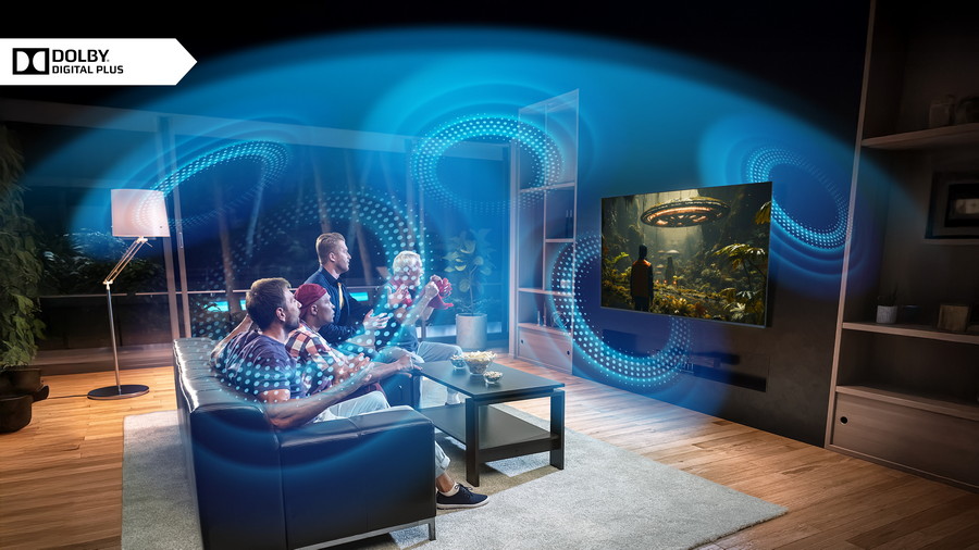 Díky pokročilým technologiím uslyšíte všechny zvuky přesně tak, jak je zamýšleli filmoví režiséři nebo hudební producenti. Dolby Audio Processing zajistí čistý, vyvážený zvuk, který zachovává každý detail dialogů, hudby i efektů. Zatímco Dolby Digital Plus přináší prostorový zvuk, který naplní místnost a dodá scénám živost. Výsledkem je fantastický zážitek z obsahu, který vás opravdu vtáhne do děje.