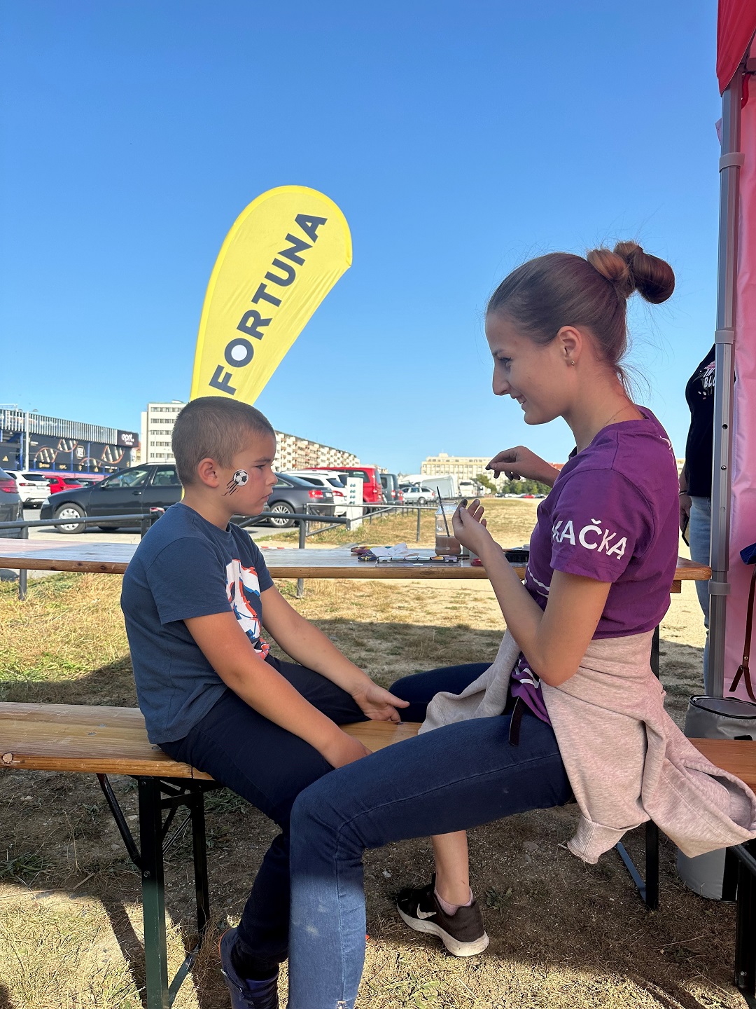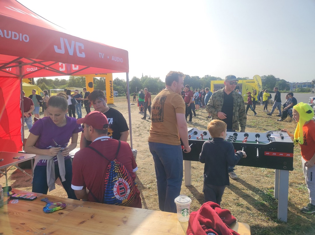 Pro ty, co se nechtěli dívat na ostatní zápasy F:L, jsme měli připravený JVC stolní fotbálek. Posledním lákadlem do našeho stánku byla malířka, u které si nejen děti nechaly pomalovat obličej do sparťanských nebo plzeňských barev, nebo pouze do fotbalové tématiky.